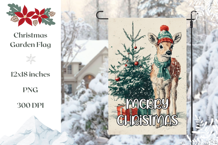 Merry Christmas Garden Flag PNG, Vintage Deer Sublimation example image 1