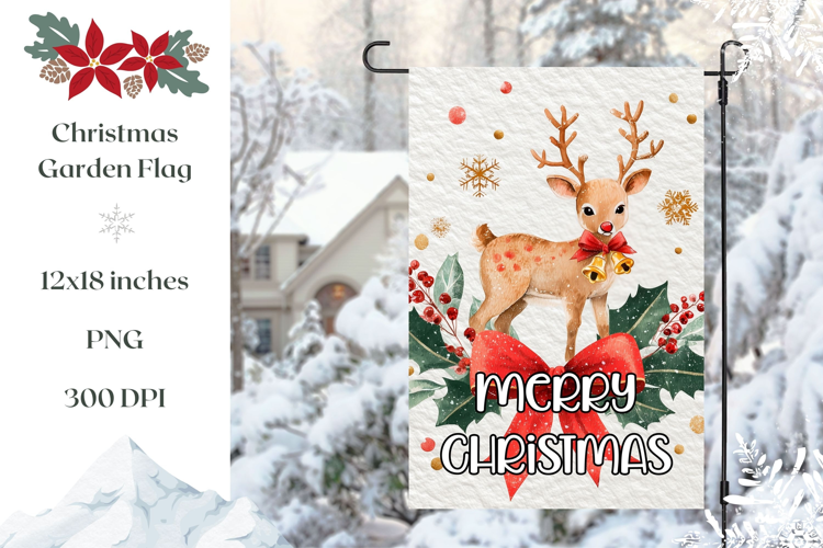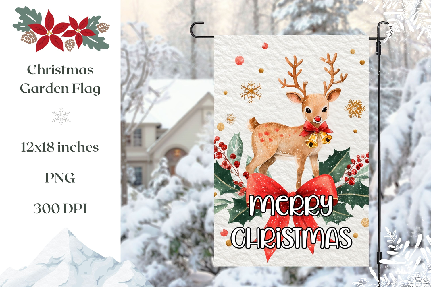 Merry Christmas Garden Flag PNG, Christmas Deer Sublimation example image 1