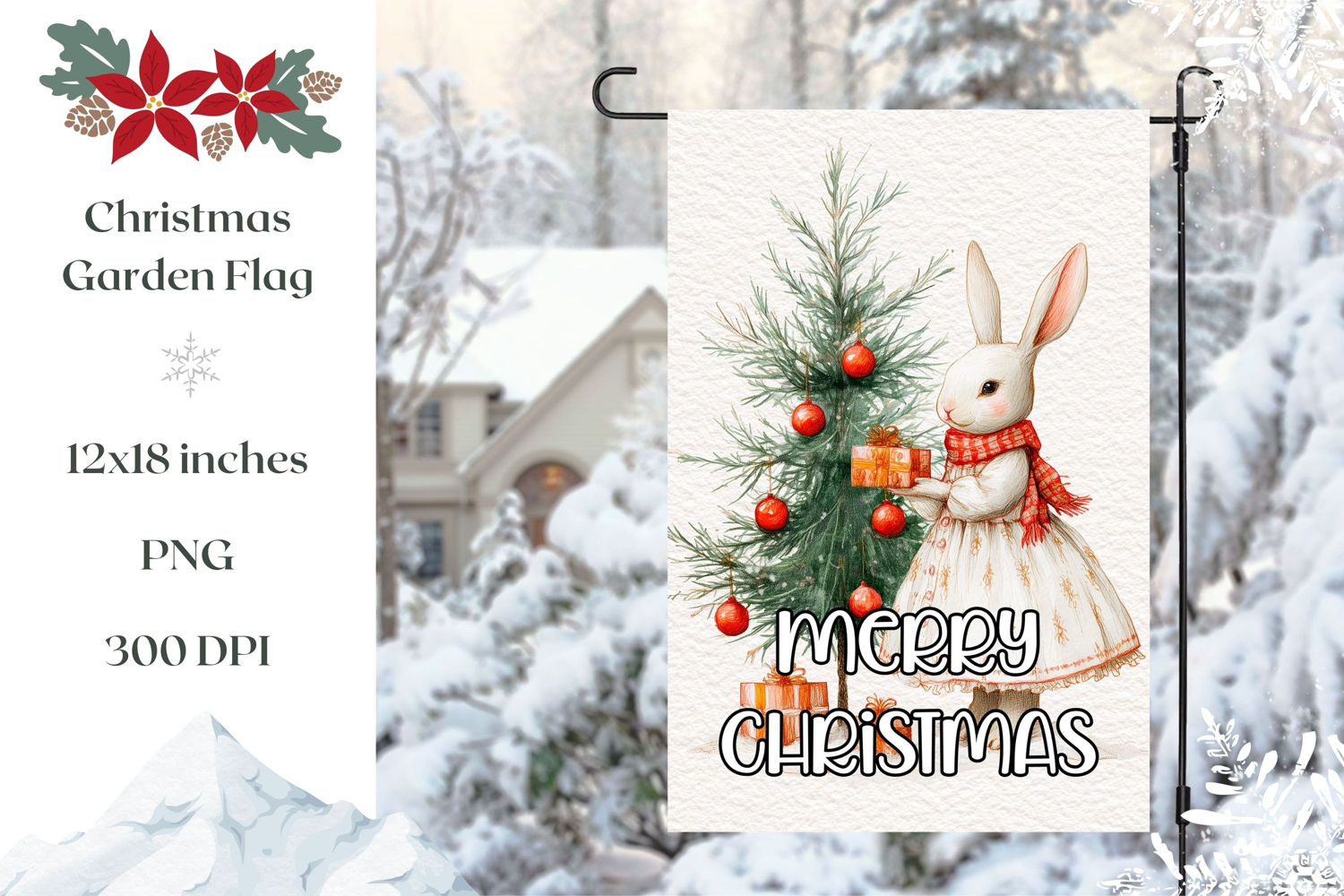 Merry Christmas Garden Flag, Christmas Rabbit PNG