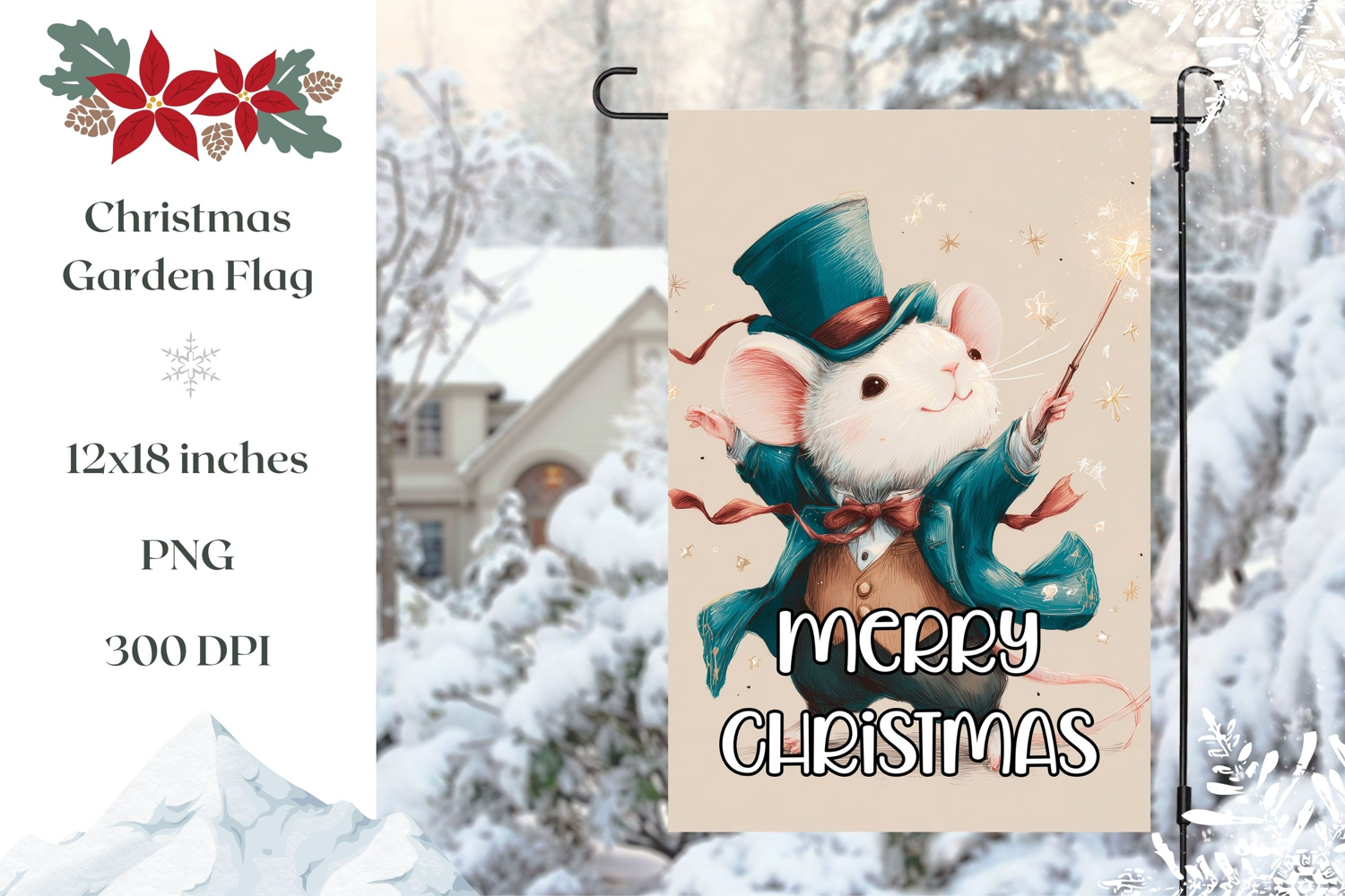Merry Christmas Garden Flag, Wizard Mouse Garden Flag Design example image 1