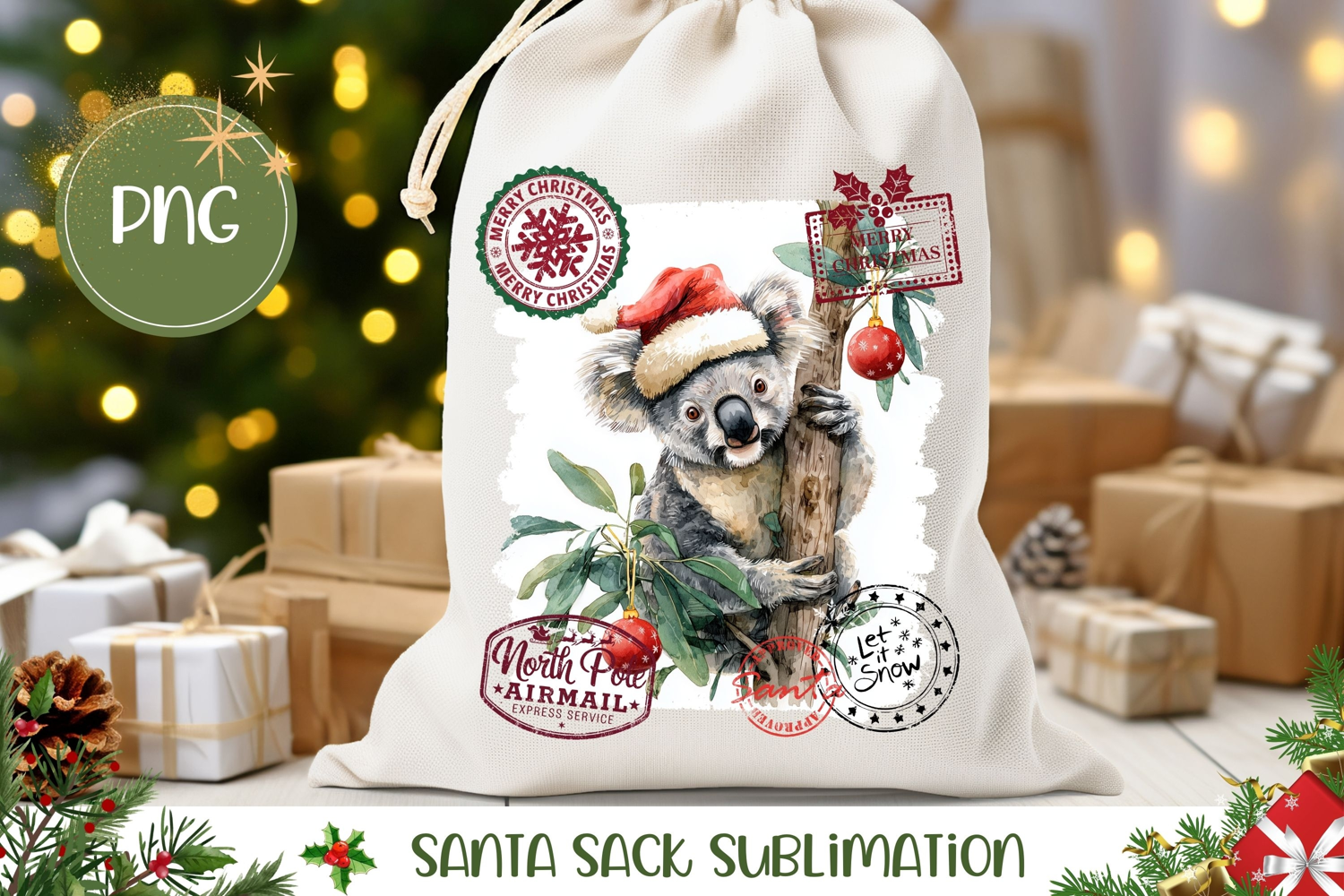 Cute Christmas Koala Santa Sack, Christmas Gift Bag PNG example image 1