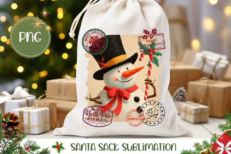 Similar Design Products to Vintage Christmas Snowman Santa Sack PNG, Christmas Gift Bag