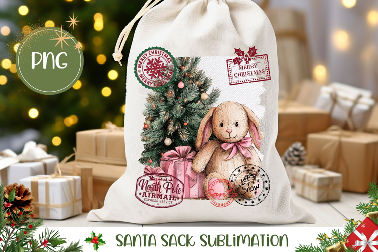 Winter Rabbit Santa Sack PNG, Christmas Gift Bag Design example image 1
