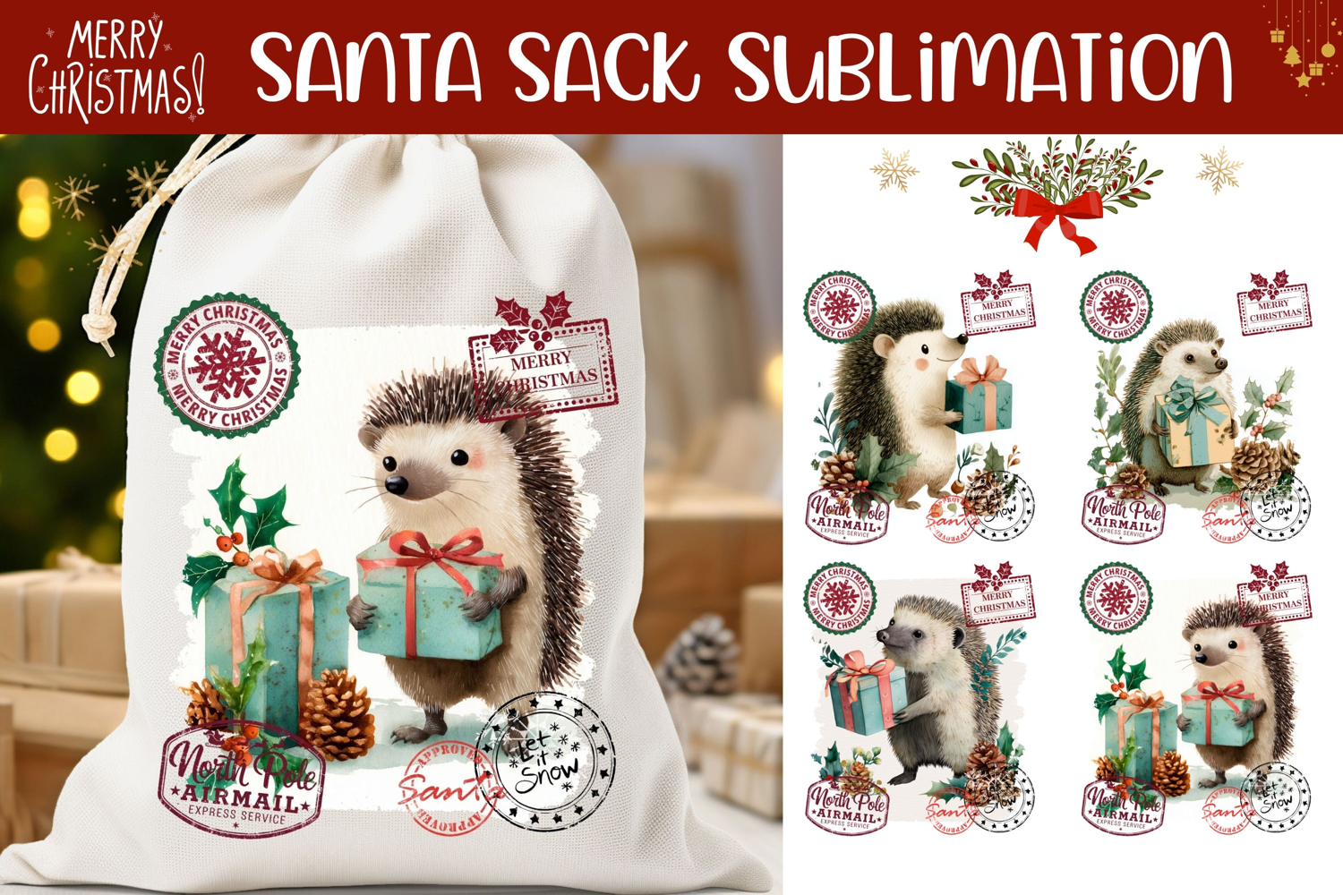 Christmas Designs Christmas Illustration Christmas Gift Bag Winter Sublimation Christmas Sublimation Designs New Year Sublimation Present Box Sublimation Christmas Hedgehog Png Christmas Santa Sack Designs Christmas Hedgehog Santa Sack