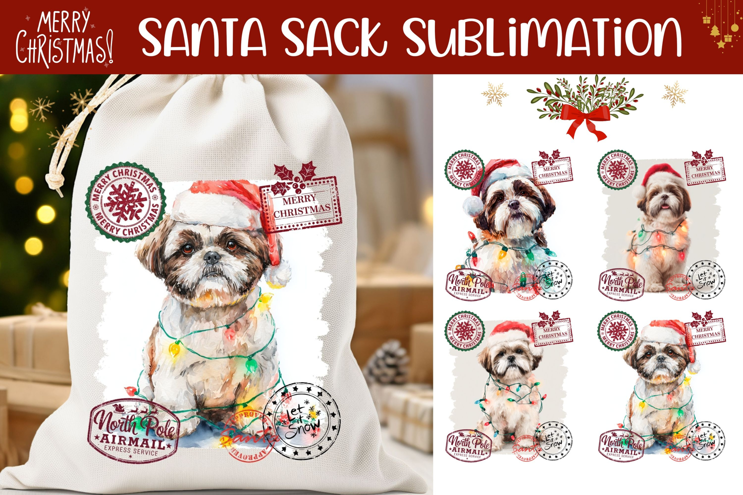 Christmas Designs Christmas Illustration Christmas Gift Bag Winter Sublimation Christmas Sublimation Designs New Year Sublimation Christmas Dog Png Present Box Sublimation Christmas Santa Sack Designs Christmas Dog Santa Sack