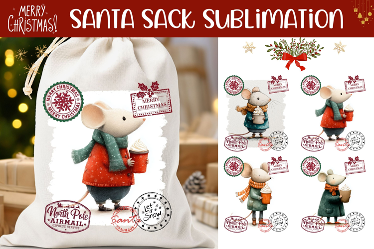 Cute Christmas Mouse Santa Sack, Christmas Santa Sack Design example image 1
