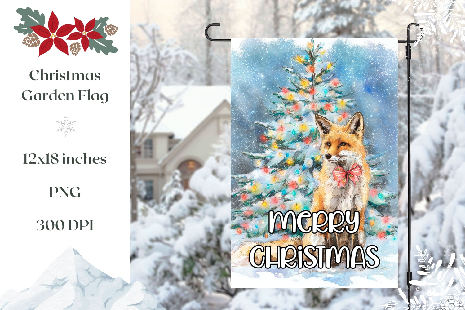 Merry Christmas Garden Flag, Watercolor Christmas Fox PNG