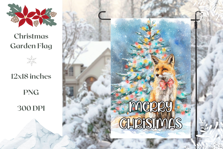 Merry Christmas Garden Flag, Watercolor Christmas Fox PNG example image 1