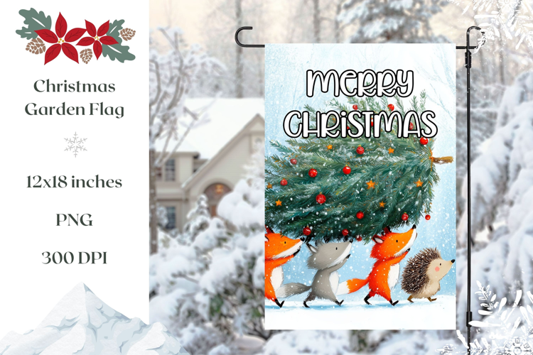 Merry Christmas Garden Flag, Cartoon Winter Animals PNG