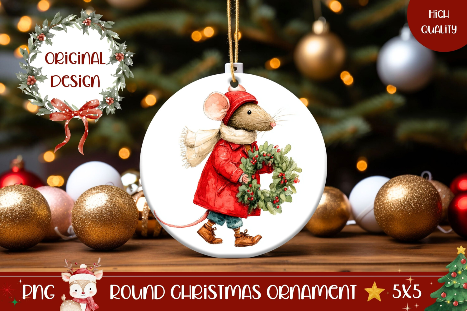 Christmas Mouse Ornament, Christmas Wreath Ornament example image 1