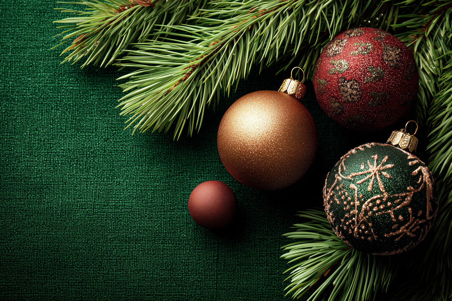 Holiday Background, Green Christmas Balls Background