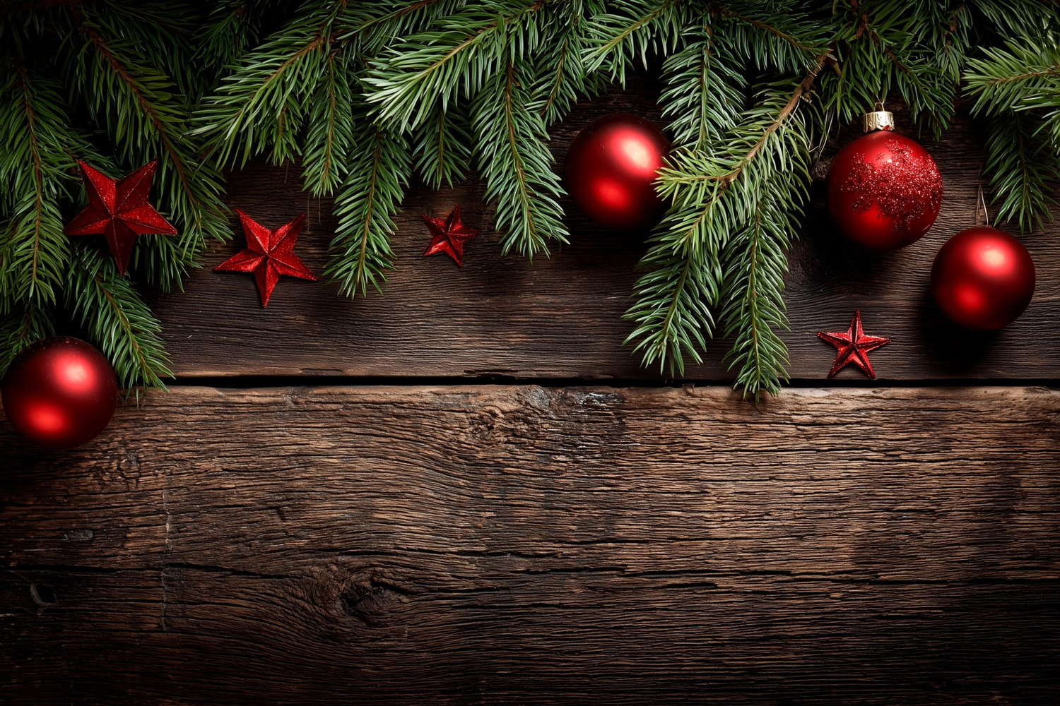 Red Christmas Balls Background, Christmas Wooden Background example image 1
