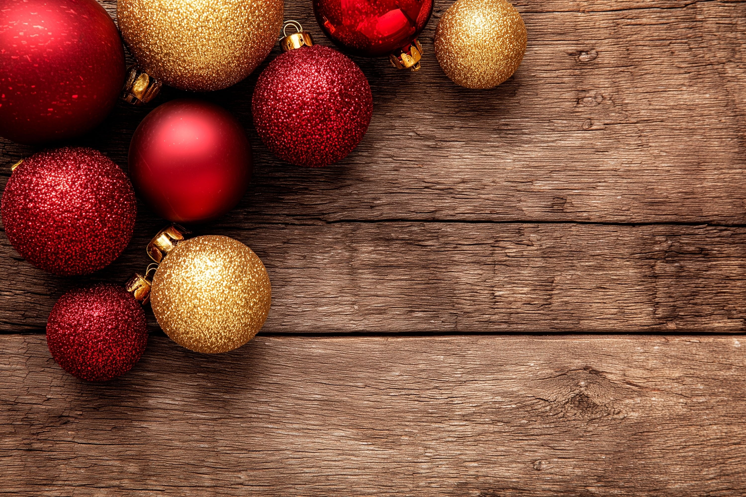 Similar Design Products to Christmas Gold Glitter Balls Background, Wooden Background