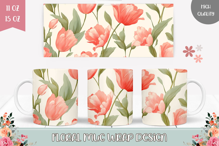 Tulips Mug Design, Spring Mug, Floral Mug Sublimation