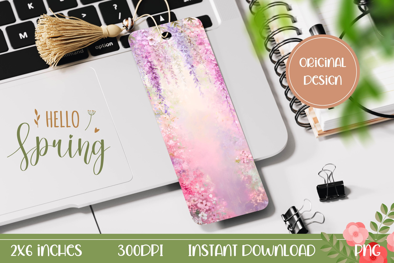 Similar Design Products to Pink Flowers Bookmark Printable, Wisteria Bookmark PNG