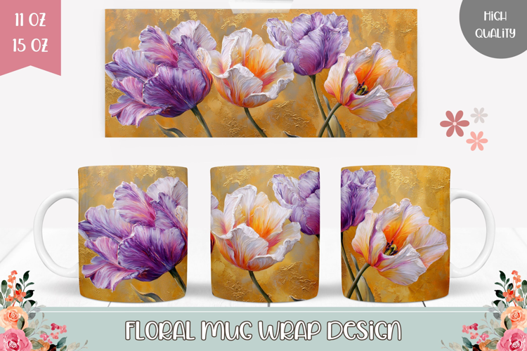 Similar Design Products to Colorful Tulips Mug Wrap, Gold Mug, Flowers Mug Template