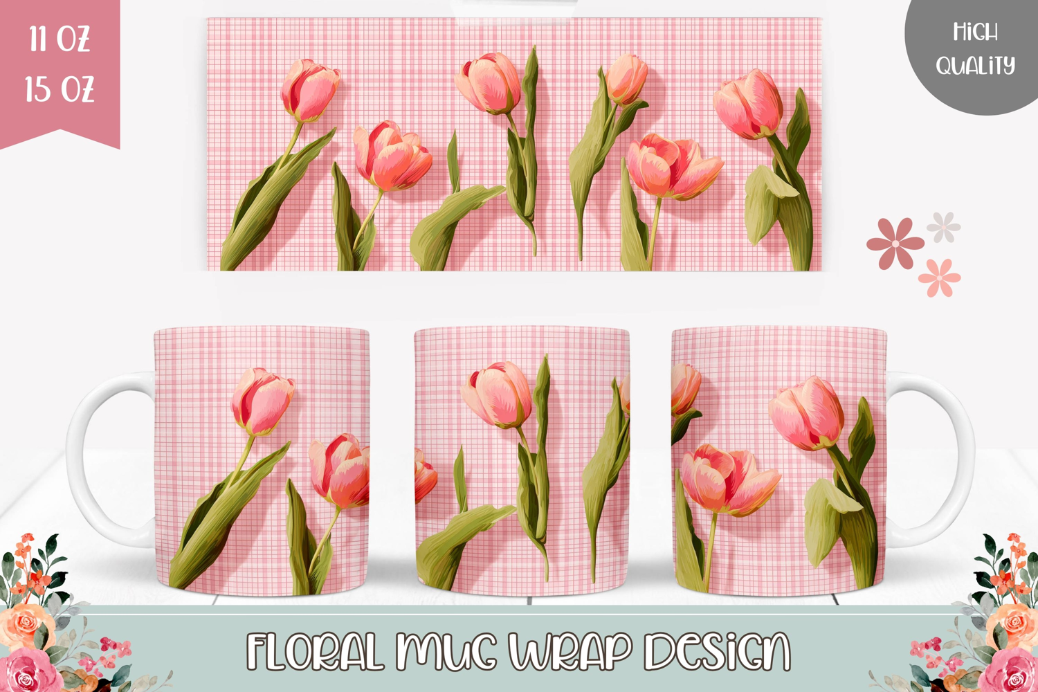 Similar Design Products to Pink Tulips Mug Design, Pink Mug, Flowers Mug Sublimation