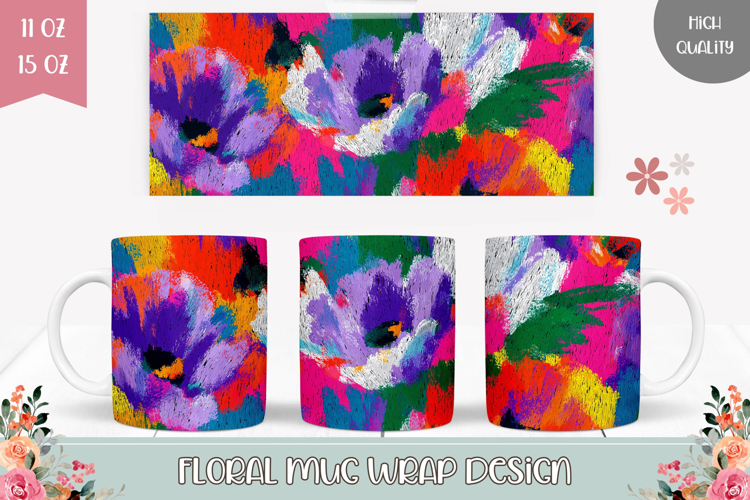 Abstract Mug Wrap, Colorful Mug, Flowers Mug Sublimation