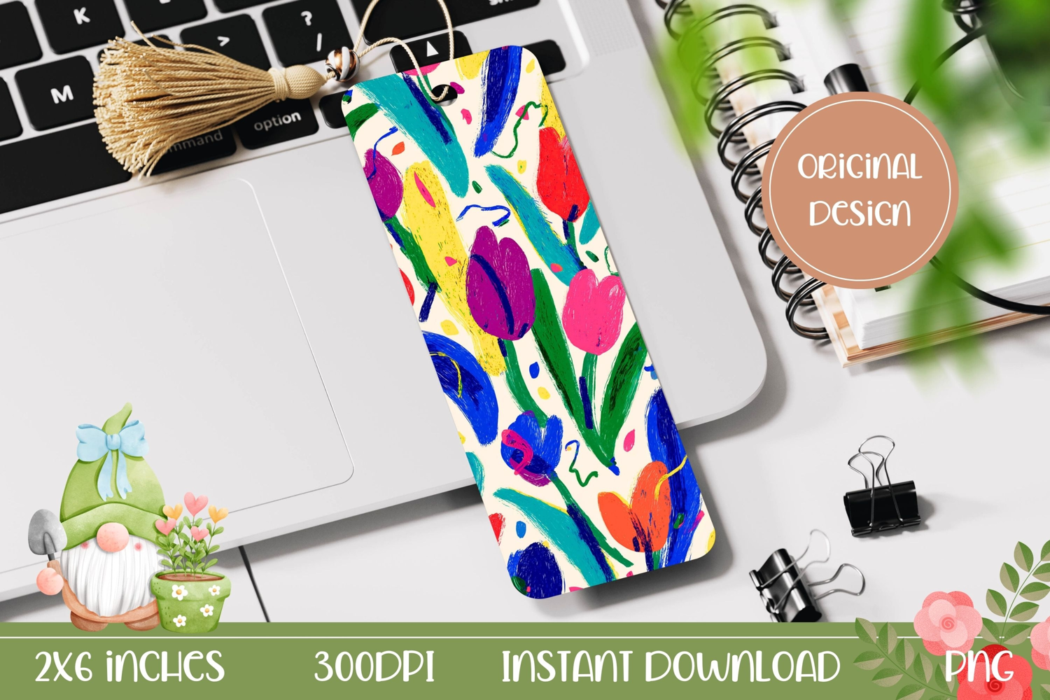 Similar Design Products to Colorful Bookmark Printable, Abstract Tulips Bookmark PNG