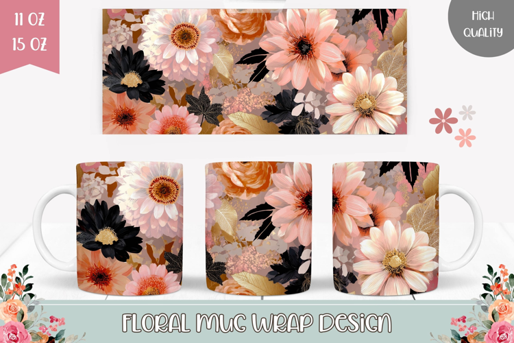 Similar Design Products to Boho Flowers Mug Wrap Design, Floral Mug Sublimation