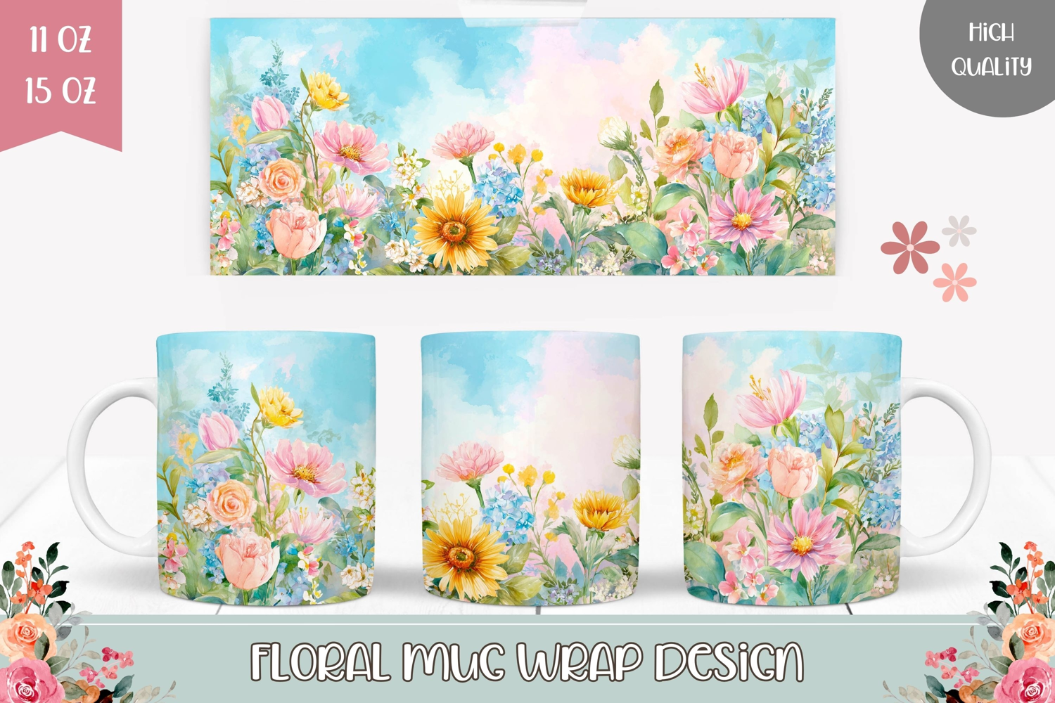 Spring Mug Template, Flowers Mug Sublimation Design example image 1