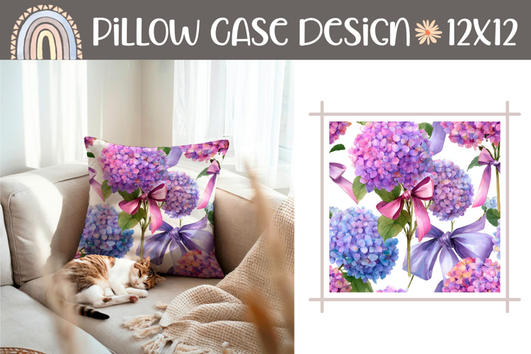Purple Hydrangea Pillow Template, Floral Pillow Sublimation