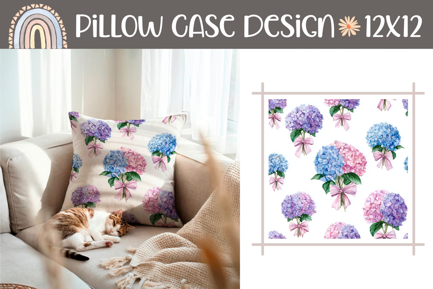 Floral Digital Paper Home Decor Floral Print Flowers Png Floral Pillow Design Summer Pillow Cover Nature Pillow Print Hydrangea Pillow Sublimation Spring Pillow Case Cartoon Flowers Pillowcase