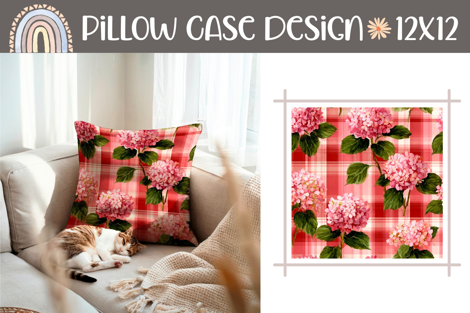 Pink Hydrangea Pillow Template, Floral Pillow Sublimation example image 1