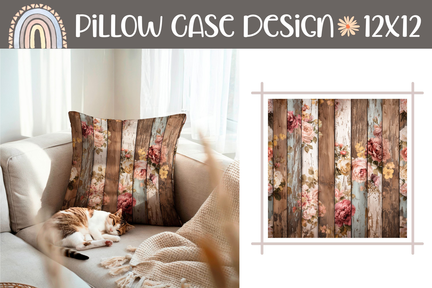 Rustic Pillow Sublimation, Floral Pillow Case Design example image 1