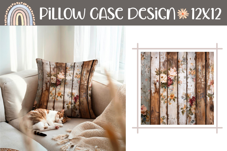 Rustic Pillow Sublimation, Floral Pillow Case Template example image 1