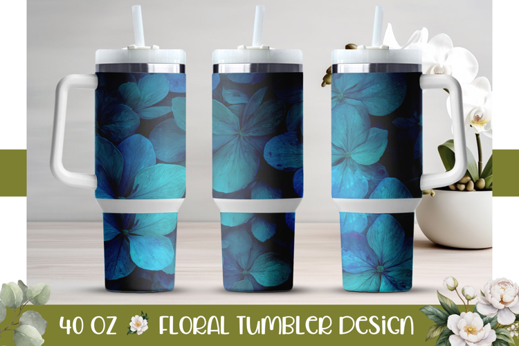 Blue Hydrangea Tumbler Design, Floral 40 Oz Tumbler Wrap example image 1