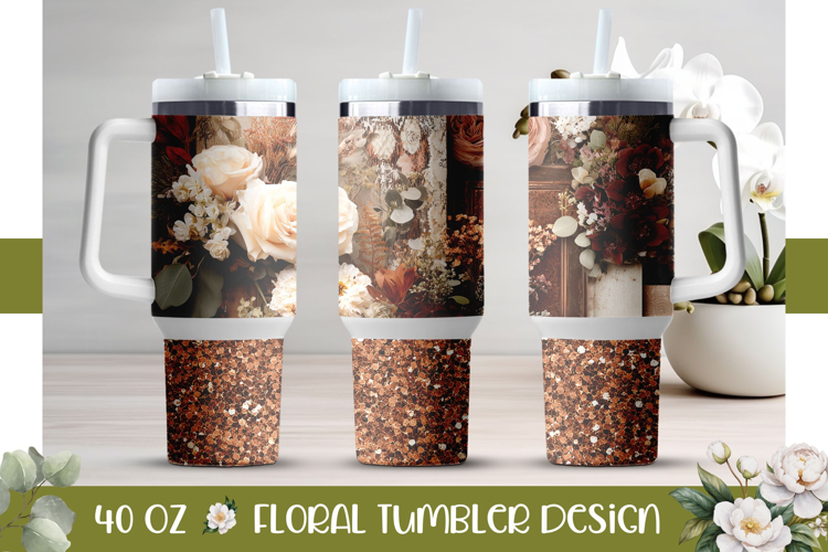 Boho Flowers Tumbler Design, Wedding 40 Oz Tumbler Wrap