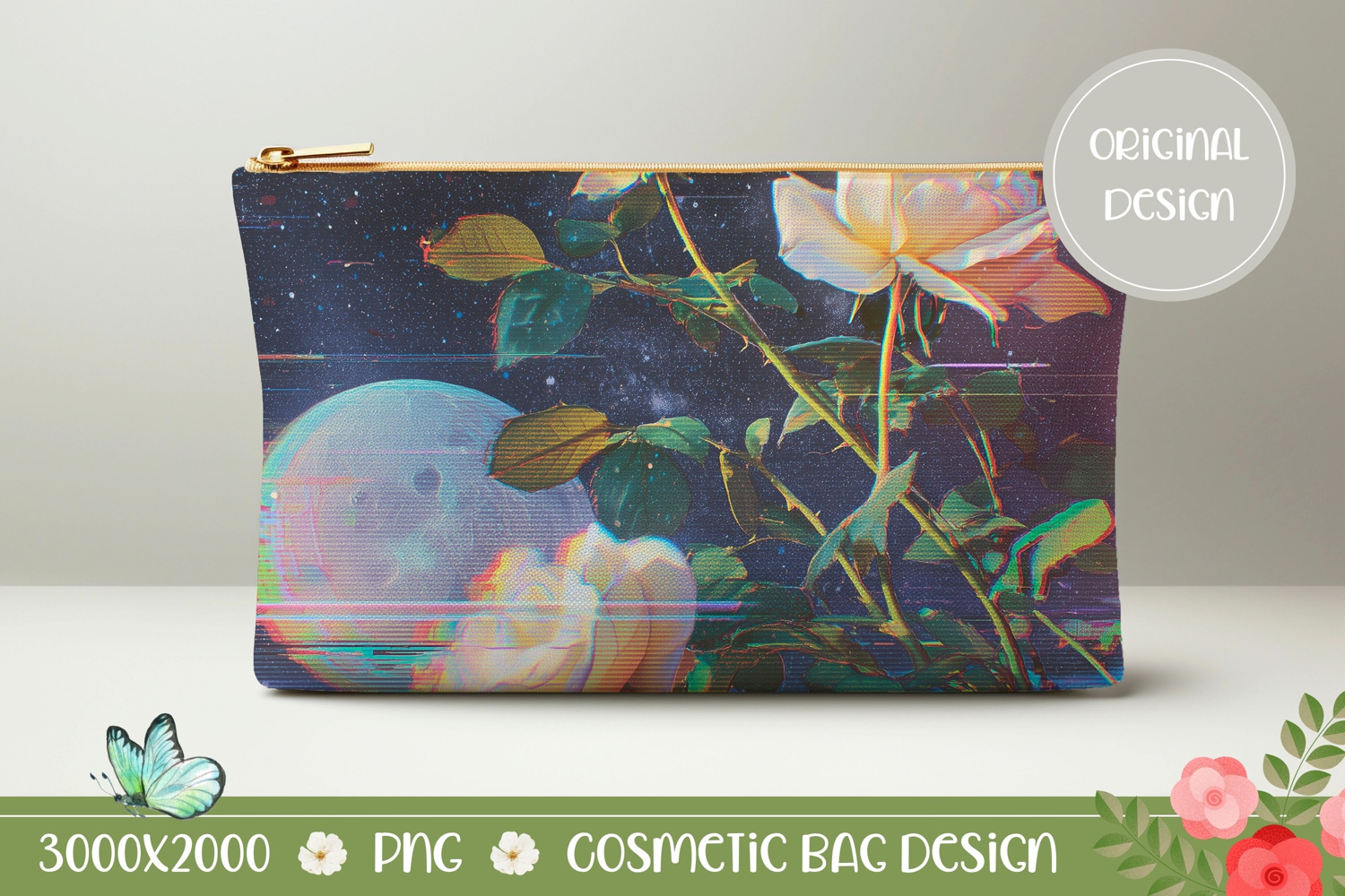 Moon Cosmetic Bag, Pink Roses Cosmetic Bag Design
