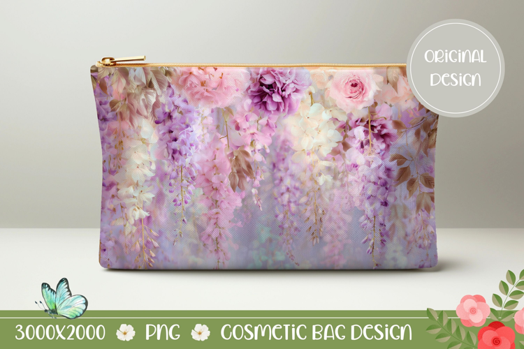 Wisteria Cosmetic Bag Template, Floral Cosmetic Bag Design example image 1