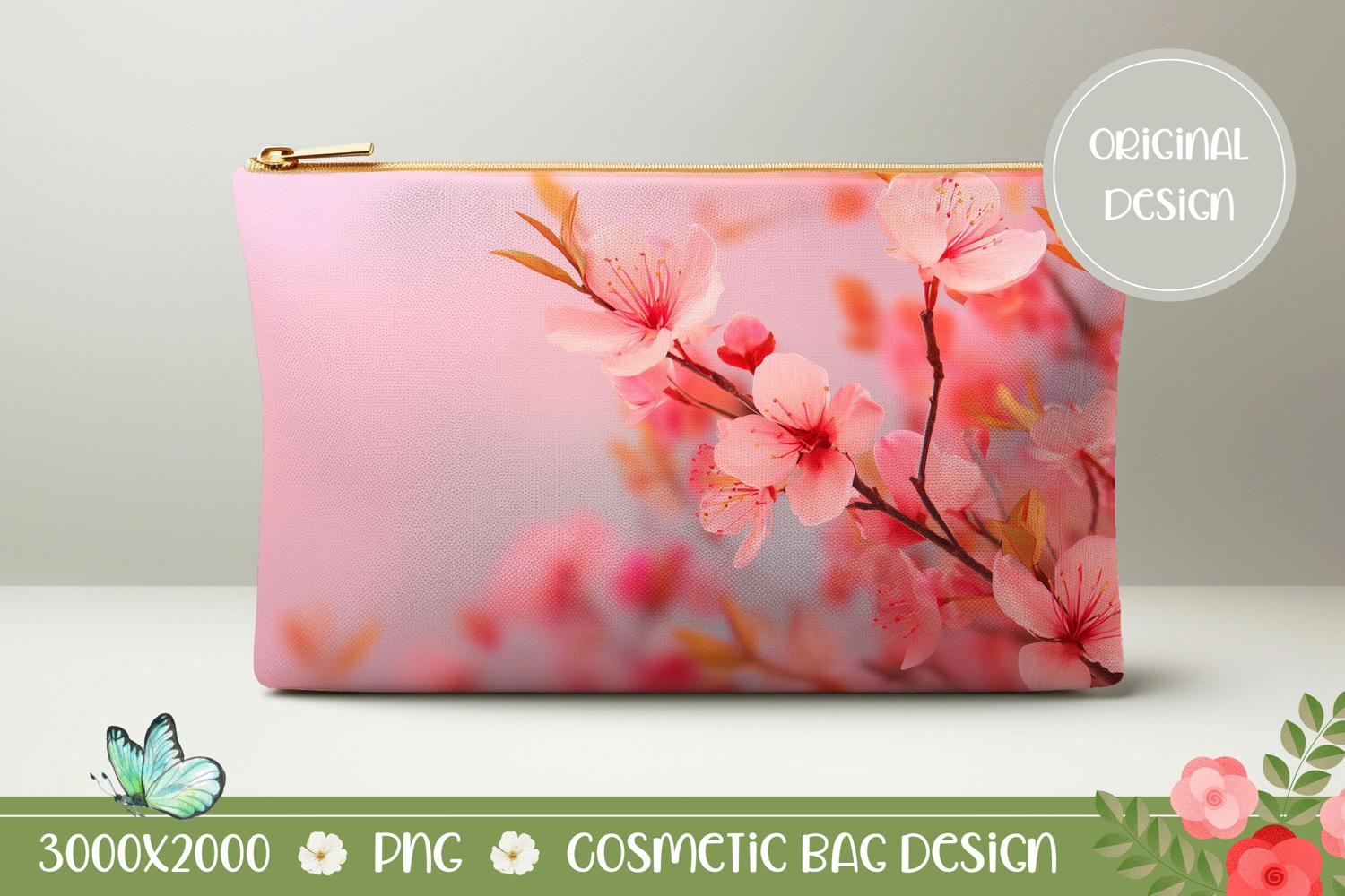 Sakura Cosmetic Bag Design, Spring Cosmetic Bag Template