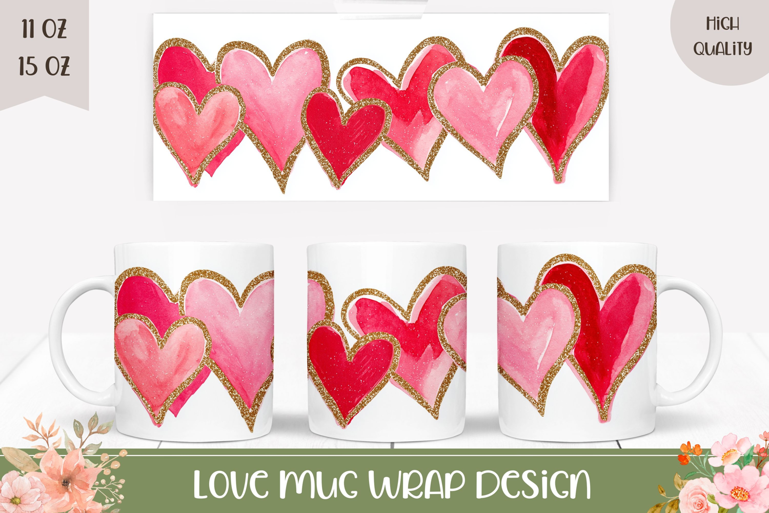 Pink Love Hearts Mug Design, Valentines Day Mug Sublimation example image 1