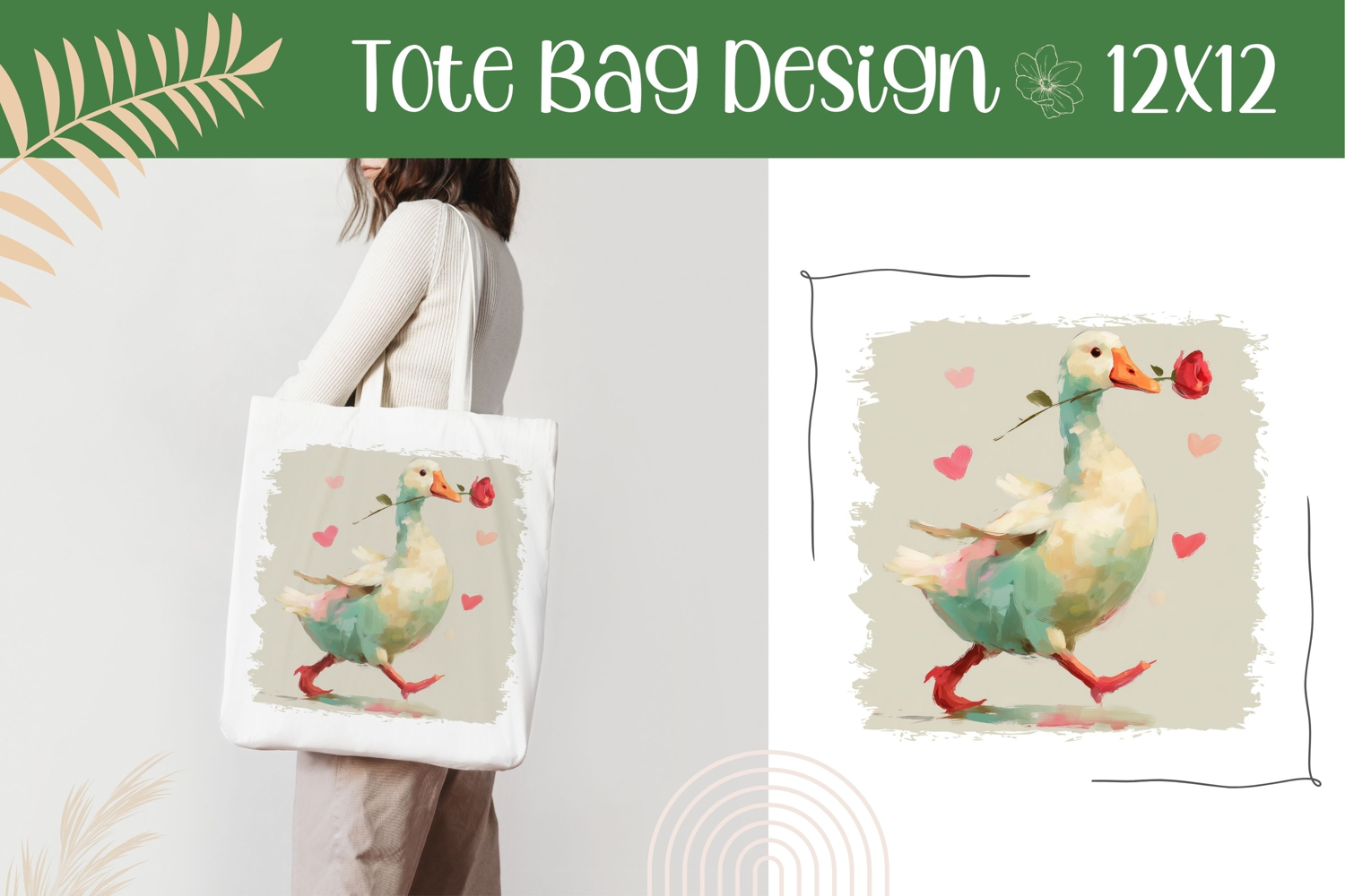 Funny Goose Illustration PNG, Love Tote Bag Template example image 1