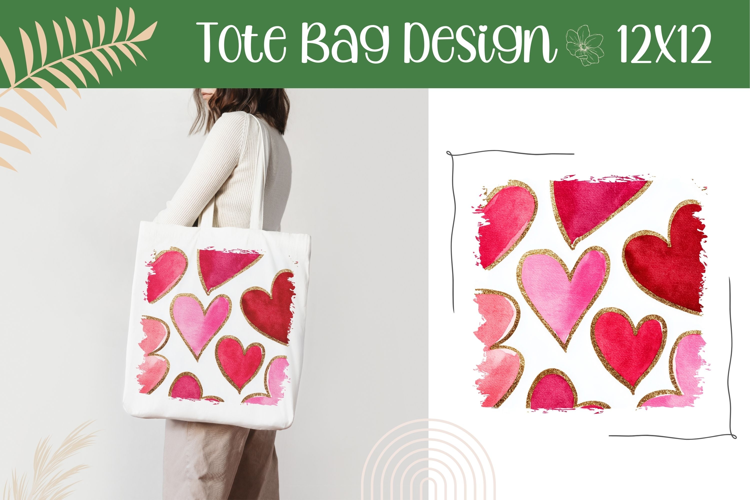 Pink Love Hearts Illustration, Love Tote Bag Template example image 1