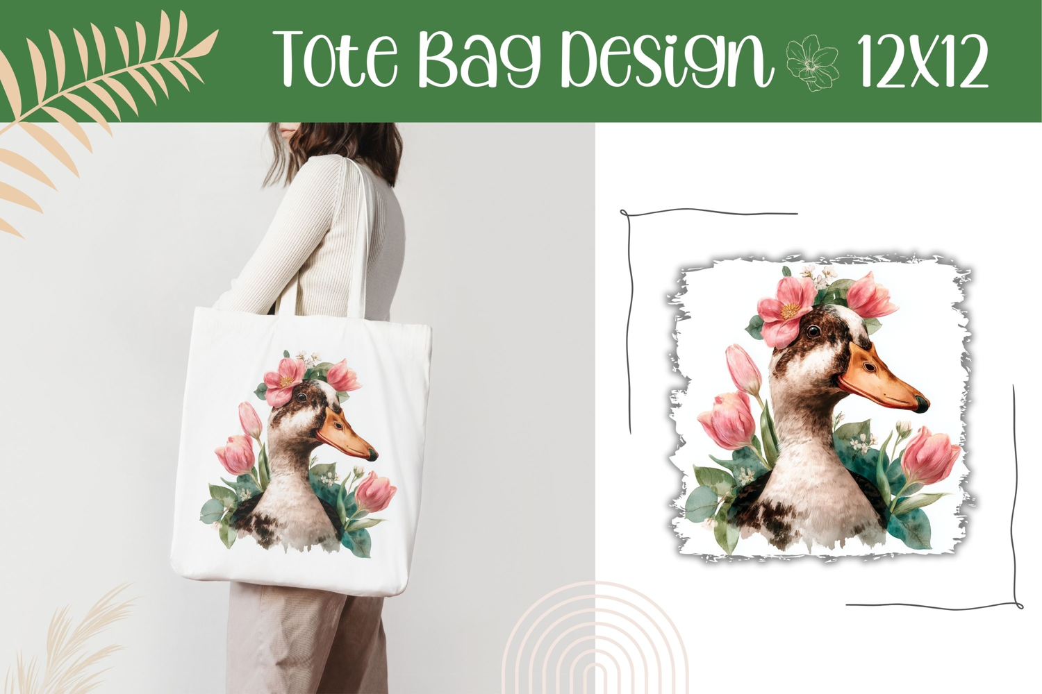 Similar Design Products to Floral Goose Illustration, Pink Tulips Tote Bag Design