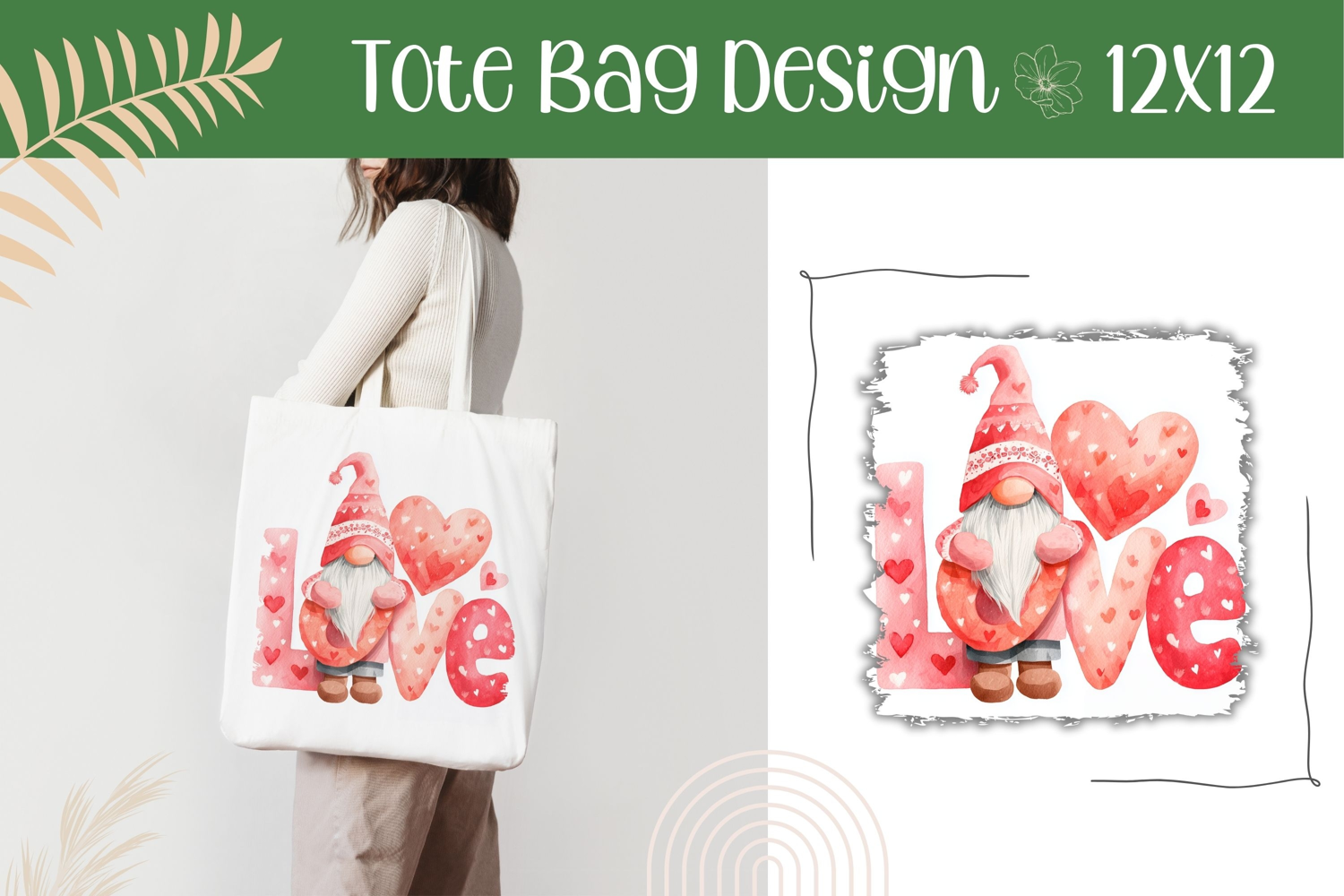 Love Gnome Illustration, Cartoon Gnome Tote Bag Design