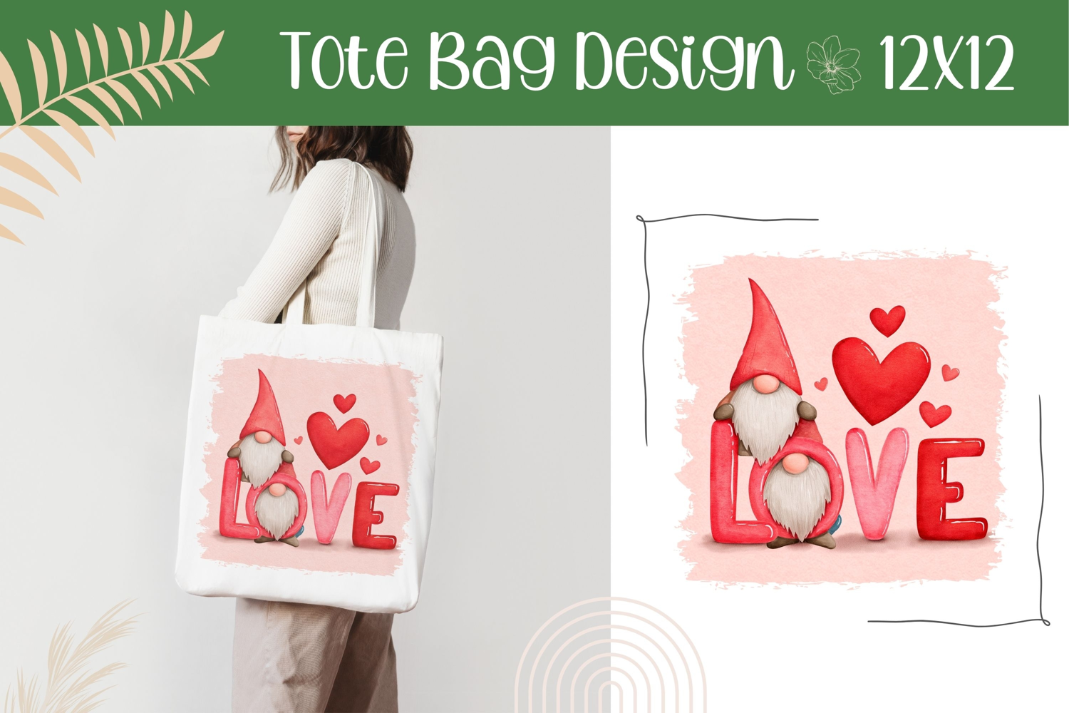 Love Gnome Illustration PNG, Love Tote Bag Template example image 1