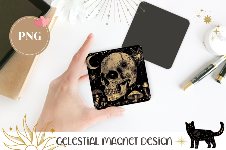 Celestial Fridge Magnet, Gothic Skull Magnet Template example image 1