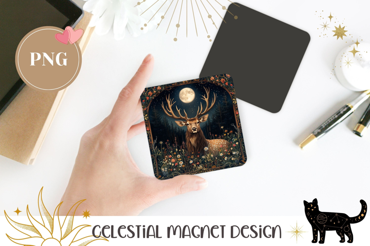 Celestial Moon Magnet Print, Cartoon Deer Magnet Template example image 1