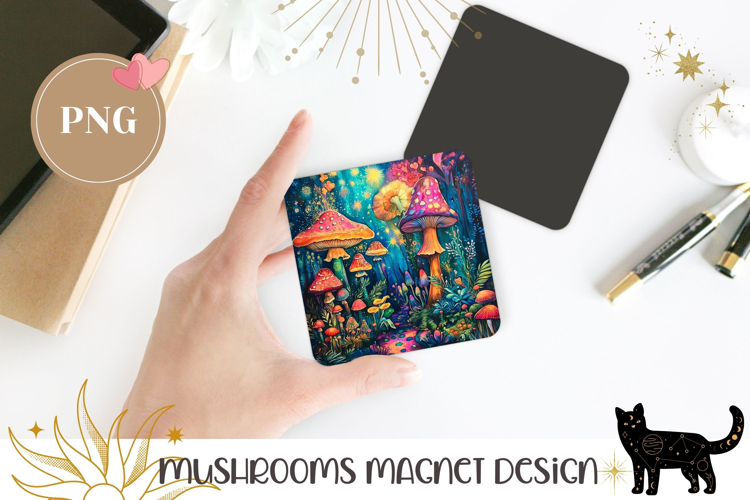 Similar Design Products to Neon Mushrooms Magnet Print, Night Forest Fridge Magnet