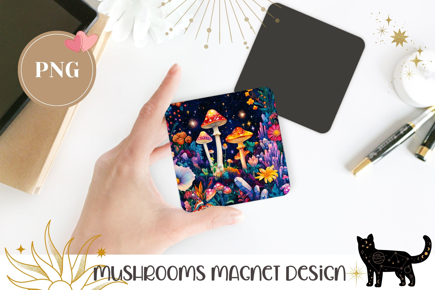 Celestial Mushrooms Magnet PNG, Neon Mushrooms Sublimation example image 1