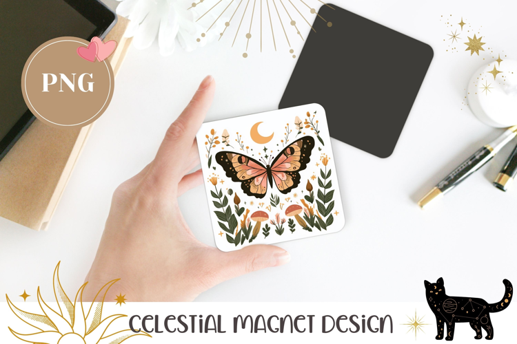 Celestial Butterfly Magnet PNG, Cartoon Moth Magnet Template example image 1