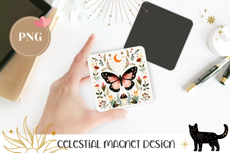 Celestial Butterfly Magnet Template, Cartoon Moth Magnet example image 1