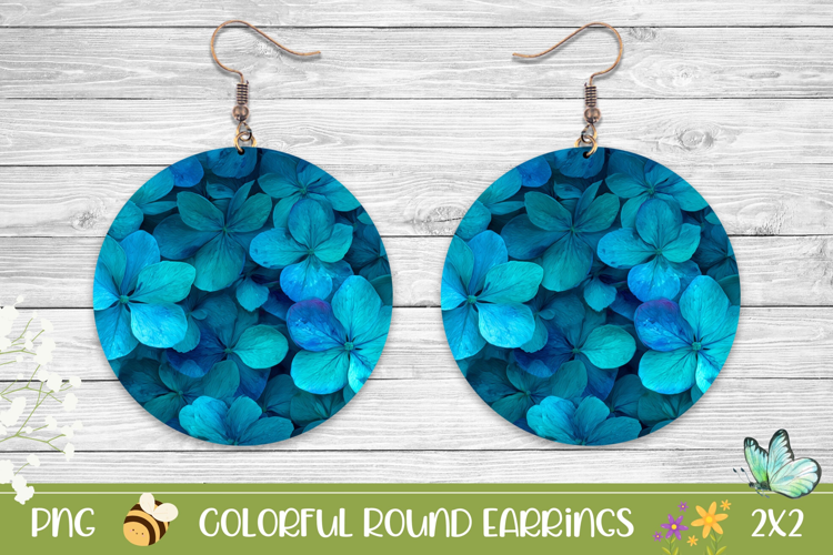 Similar Design Products to Blue Hydrangea Round Earrings, Floral Earring Sublimation