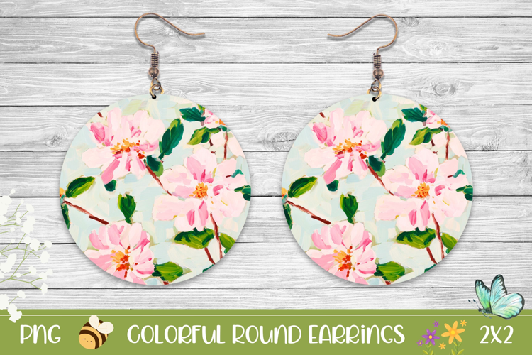 Summer Earrings Spring Earrings Earrings Sublimation Printable Earrings Floral Earrings Design Flowers Round Earrings Floral Round Earrings Flowers Earrings Png Jewerly Sublimation Creative Round Earrings