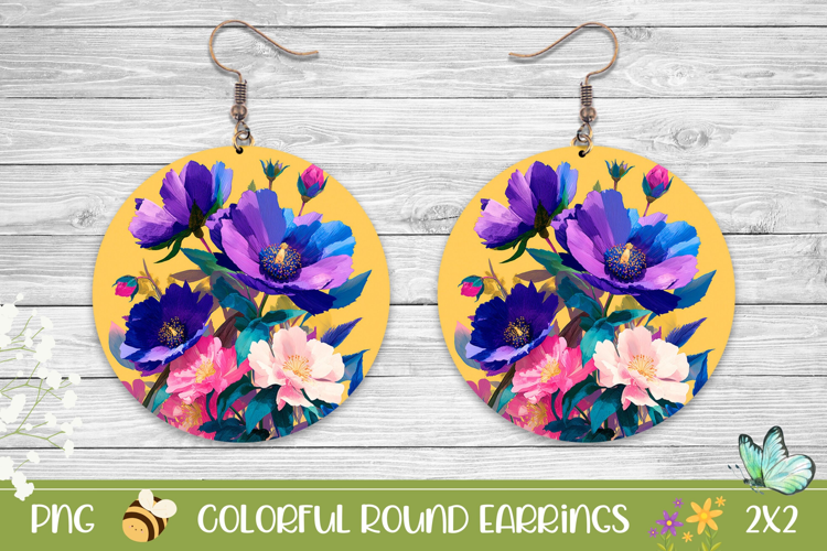 Summer Earrings Spring Earrings Earrings Sublimation Printable Earrings Floral Earrings Design Flowers Round Earrings Floral Round Earrings Flowers Earrings Png Jewerly Sublimation Creative Round Earrings